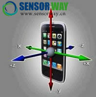 iOS設(shè)備的三軸加速度傳感器示意圖