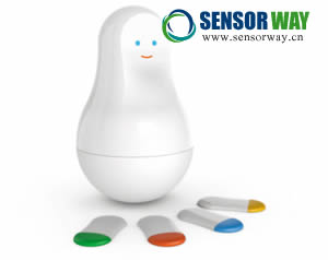 目前推出的這一款傳感器,造型十分可愛,它們有像“巴巴爸爸”那樣的許多表情。它的電池換一次應該可以用上一年。